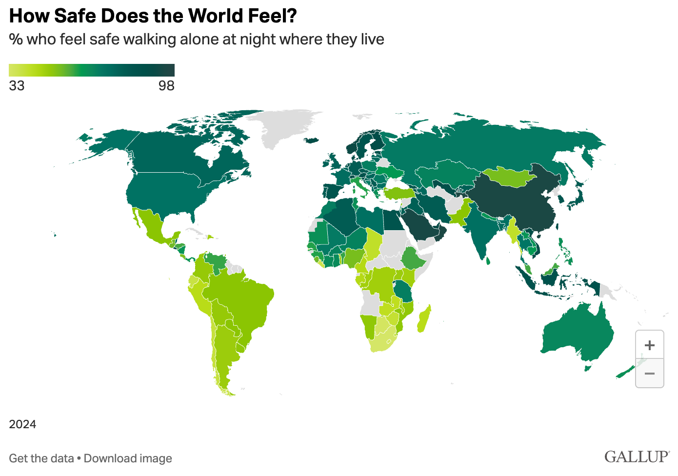 In 2024, 98% of Singaporean women reported feeling safe walking alone at night. In South Africa it is just 24%. That gap captures something fundamental about women’s lives, and surely merits greater attention?