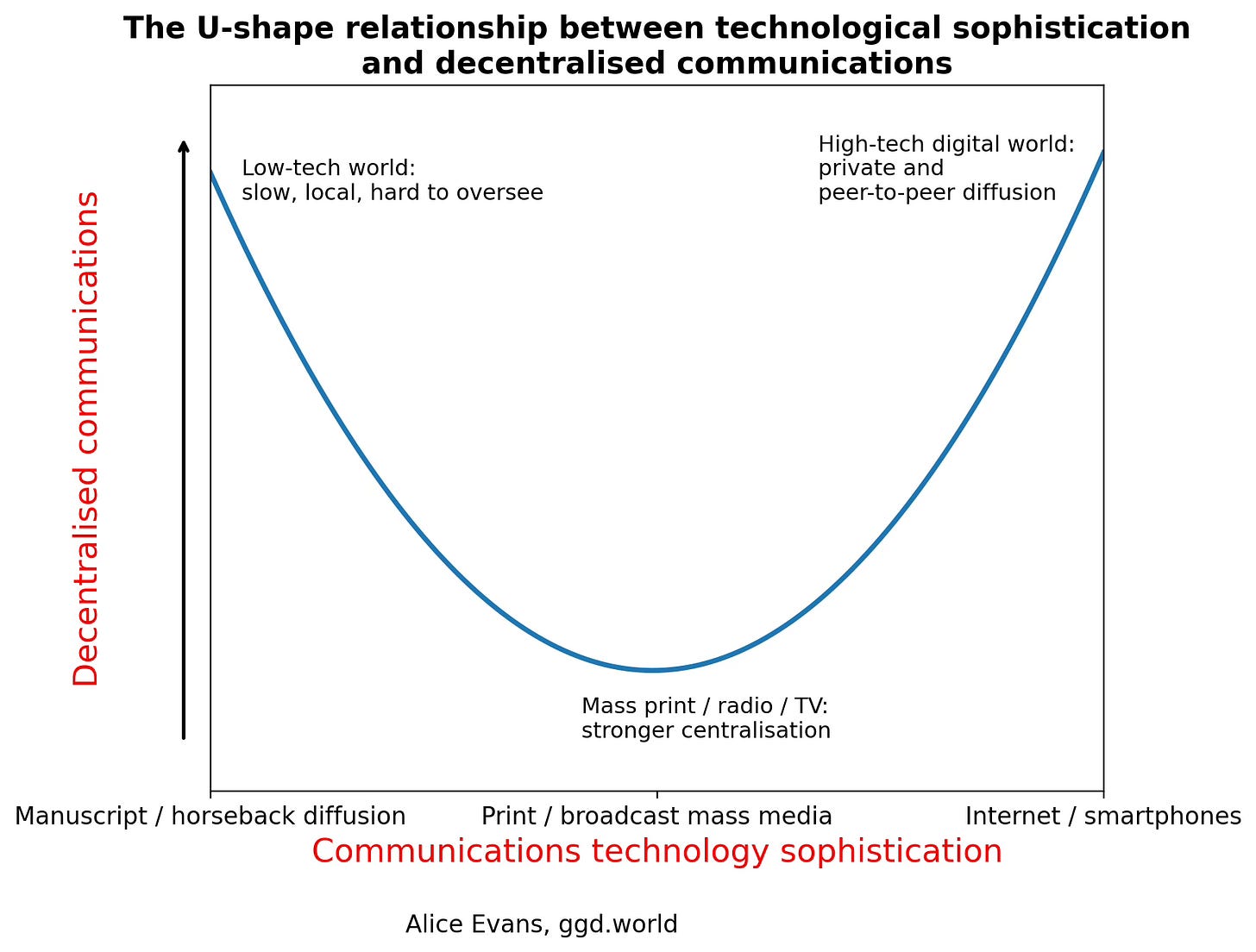 The Printing Press famously enabled large-scale ideological persuasion - both by dissidents like Martin Luther and also establishments like the Catholic Church. Writing in pamphlets and periodicals, Europe’s Enlightenment thinkers later lobbied for liberty and secularism. Governments also got in on the act: mandating mass education and standardising curricula. Circulating libraries brought novels to the middle-classes, enabling female authors to celebrate loving companionship. In this new era of nation-building, villages were no longer isolated but swept into wider intellectual tides.