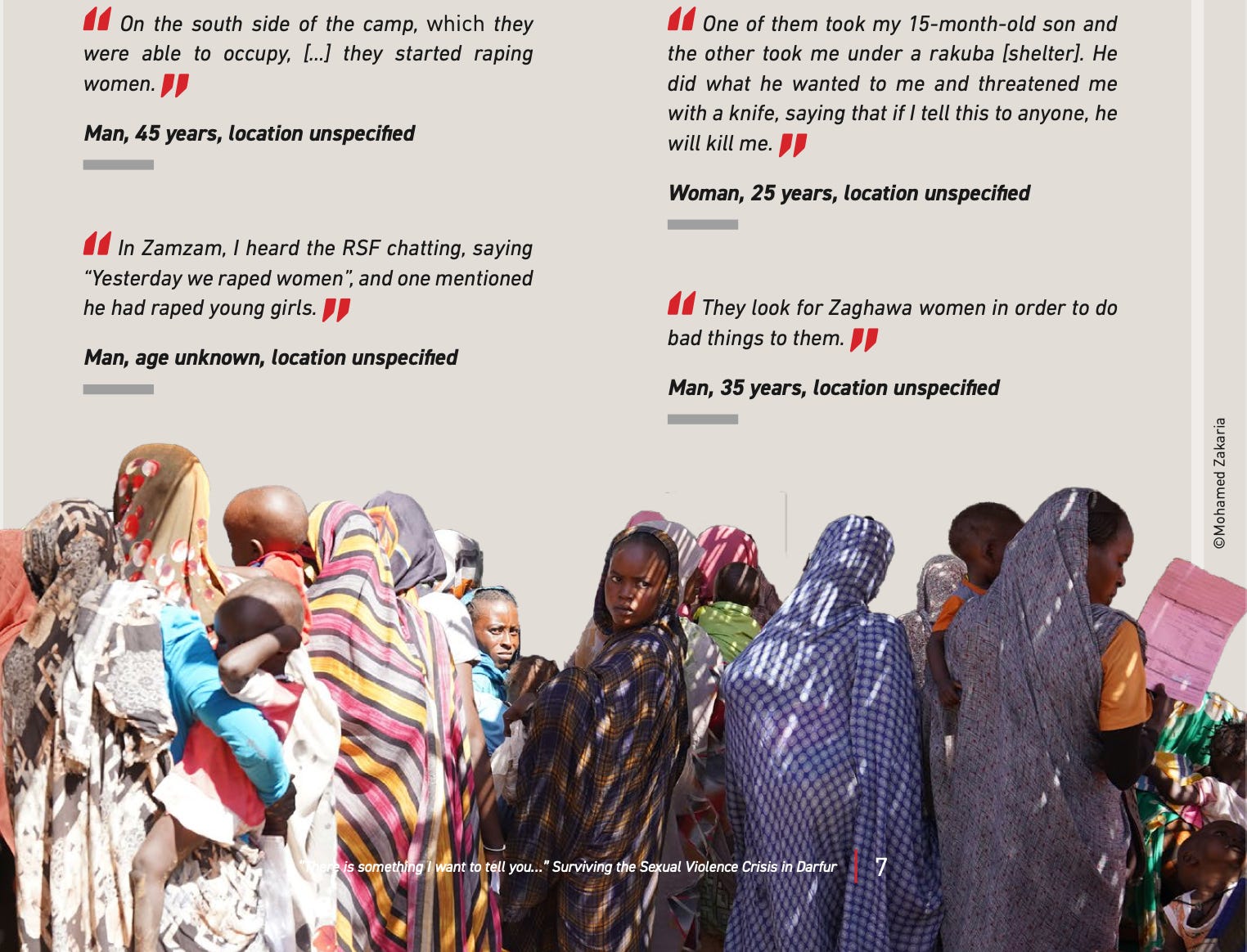 Just this week, Médecins Sans Frontières published a report on sexual violence in Darfur. One 40 year old woman is quoted as saying,