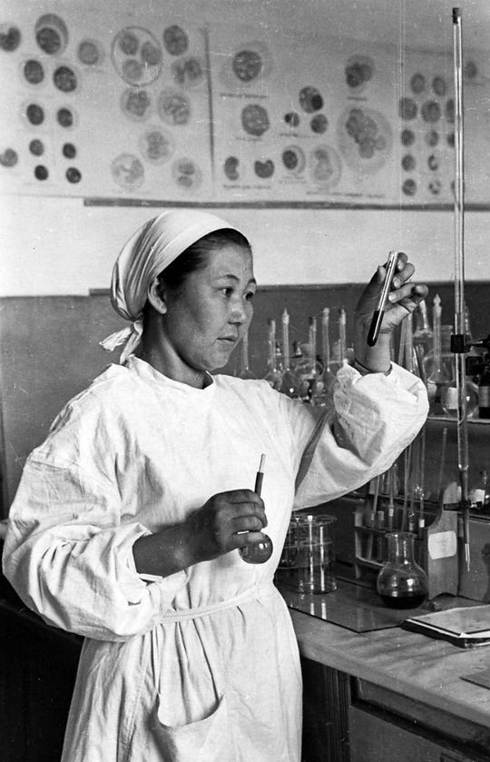 Capital investment was tripled - with targets for productivity and female employees. Power stations, hydroelectric dams and railroads accelerated industrialisation. Cotton could now be processed in textile factories. Between 1925 and 1939, Uzbekistan’s female workforce leapt from 9 to 39%. To maximise female employment, the Soviets also established pre-schools - building over two thousand in Uzbekistan by 1940. Women graduated as doctors, lawyers, and scientists.