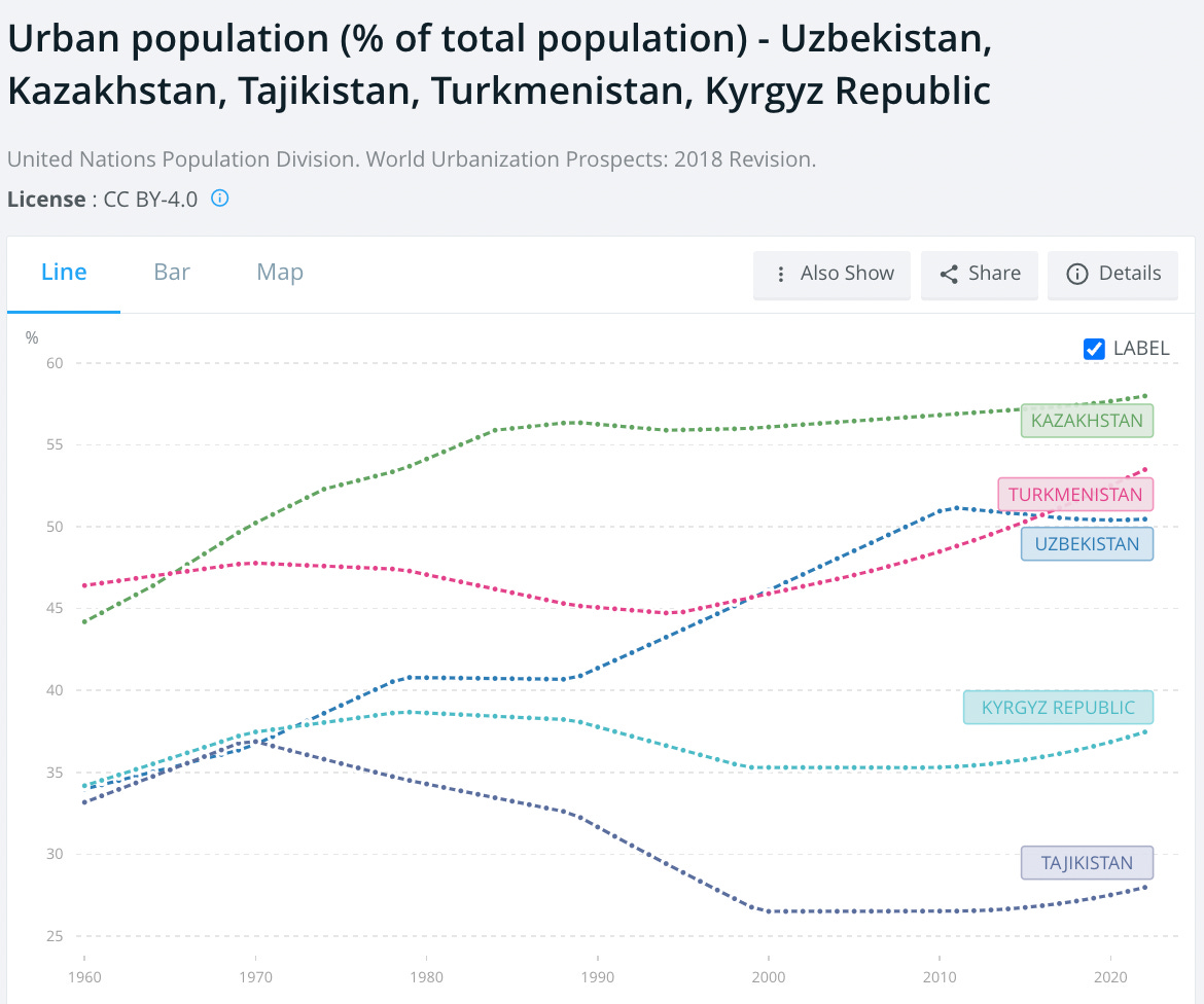 65% of Uzbeks and Tajiks in the 1960s lived in villages. That’s the same percentage rural as contemporary South Asia. State penetration was weak; religion and patriarchy persisted.