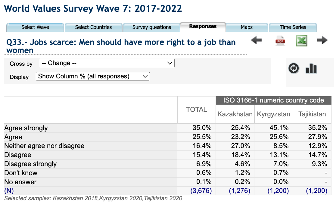 Economic stagnation may have fostered beliefs that the world is ‘zero sum’. If prizes are scarce, then one person’s victory comes at another’s expense. In Kyrgyzstan, 70% say that men have greater rights to a job. Men want to protect their rights to finite resources. Construction workers in Termiz (Uzbekistan) say that men are superior to women, who should stay out of many jobs. Meanwhile, mothers remain dependent on their sons, and seek obliging daughters-in-law. Precarity may help explain demand for strict religious conservatism.