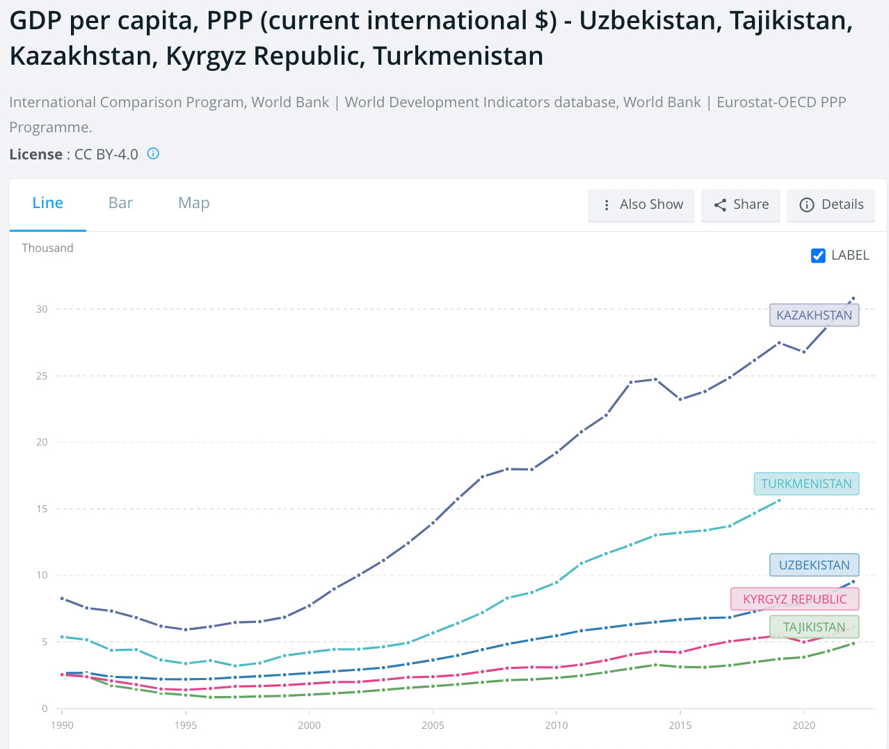 Kyrgyzstan and Kazakstan are good comparators. Both populations were nomadic pastoralists, who experienced totalitarian communism, and have since diverged economically. Kyrgyzstan remains much poorer: Political Islam has flourished; weddings may now include sex-segregated spaces; endorsement of male leadership has actually increased.