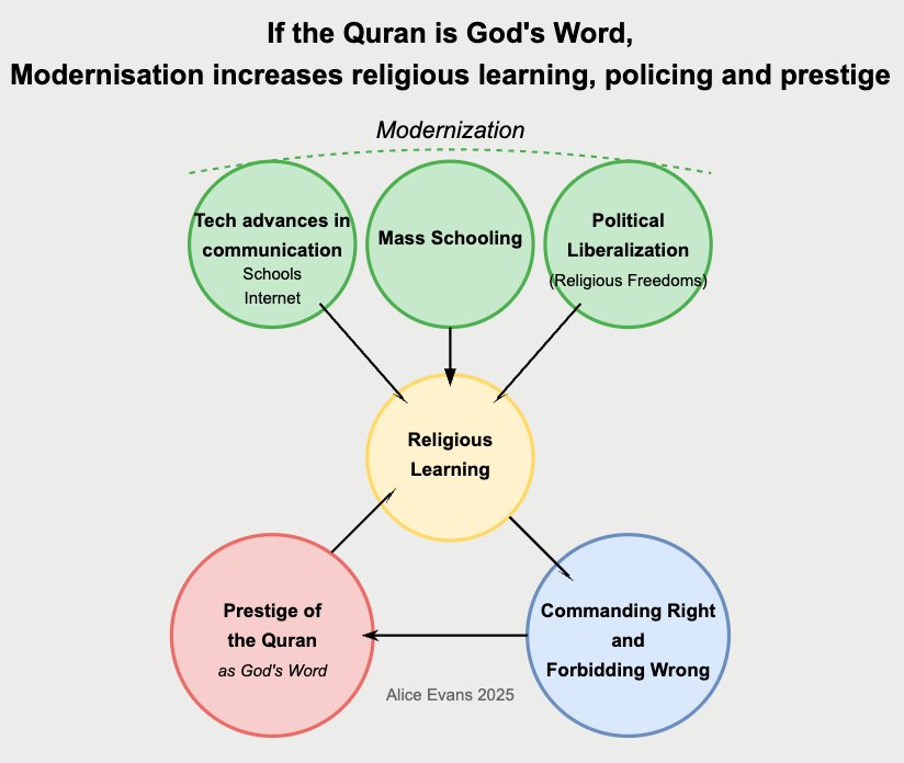 This resurgence clashed with secular deviations, sparking tensions. Alarmed by illegitimate deviations and shirk, religious authorities mobilised communities, urging piety. This ignited a powerful feedback loop - as young men commanded right and forbid wrong, organised at universities, women reveiled, and growing numbers voted for religious parties.